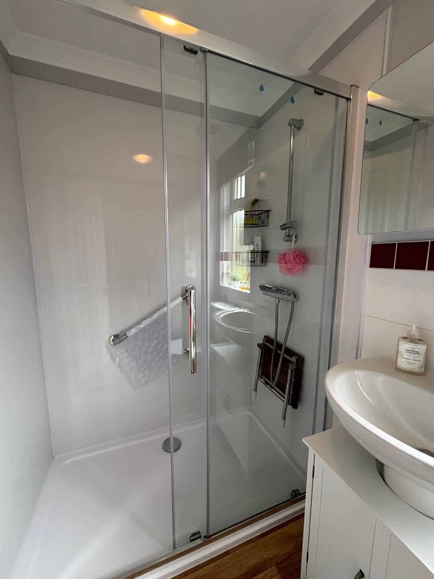 There are two double bedrooms to the rear to the lodge, currently equipped with single beds. The master bedroom comes with an ensuite bathroom and large walk in shower. The main family bathroom is equipped with a bath.