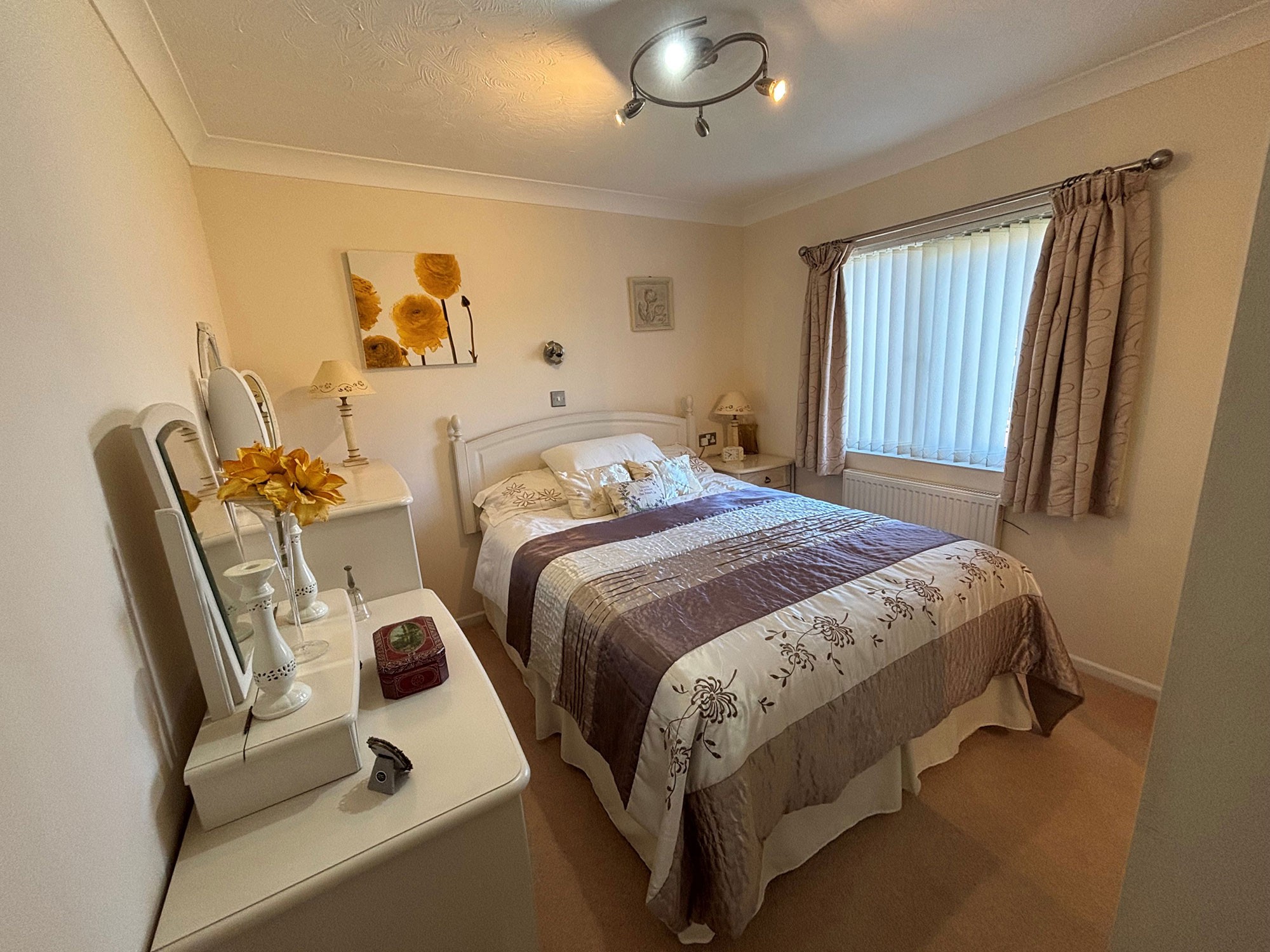 It has been lovingly cared for and is located on a lovely plot with the best view of our attractive water feature and landscaped gardens. There is a shed to the rear, included in the price and a parking bay for two cars to park side by side.