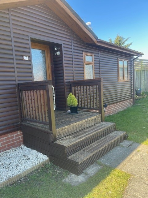 An exciting opportunity has arisen to purchase this two-bedroom Cosalt Essence 38 x 20 lodge, with an extended decking area laid with Astro Tuft.