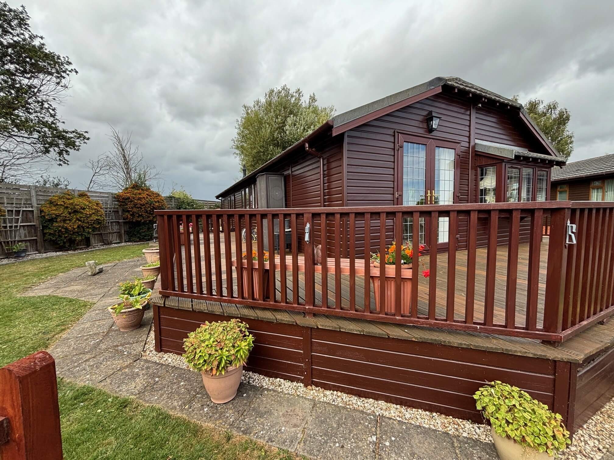This plot is one of the best on the Park with it’s large gardens and south-facing aspect. There is decking to three sides of the lodge and two sheds are situated to the rear. The private parking bay can accommodate two cars.